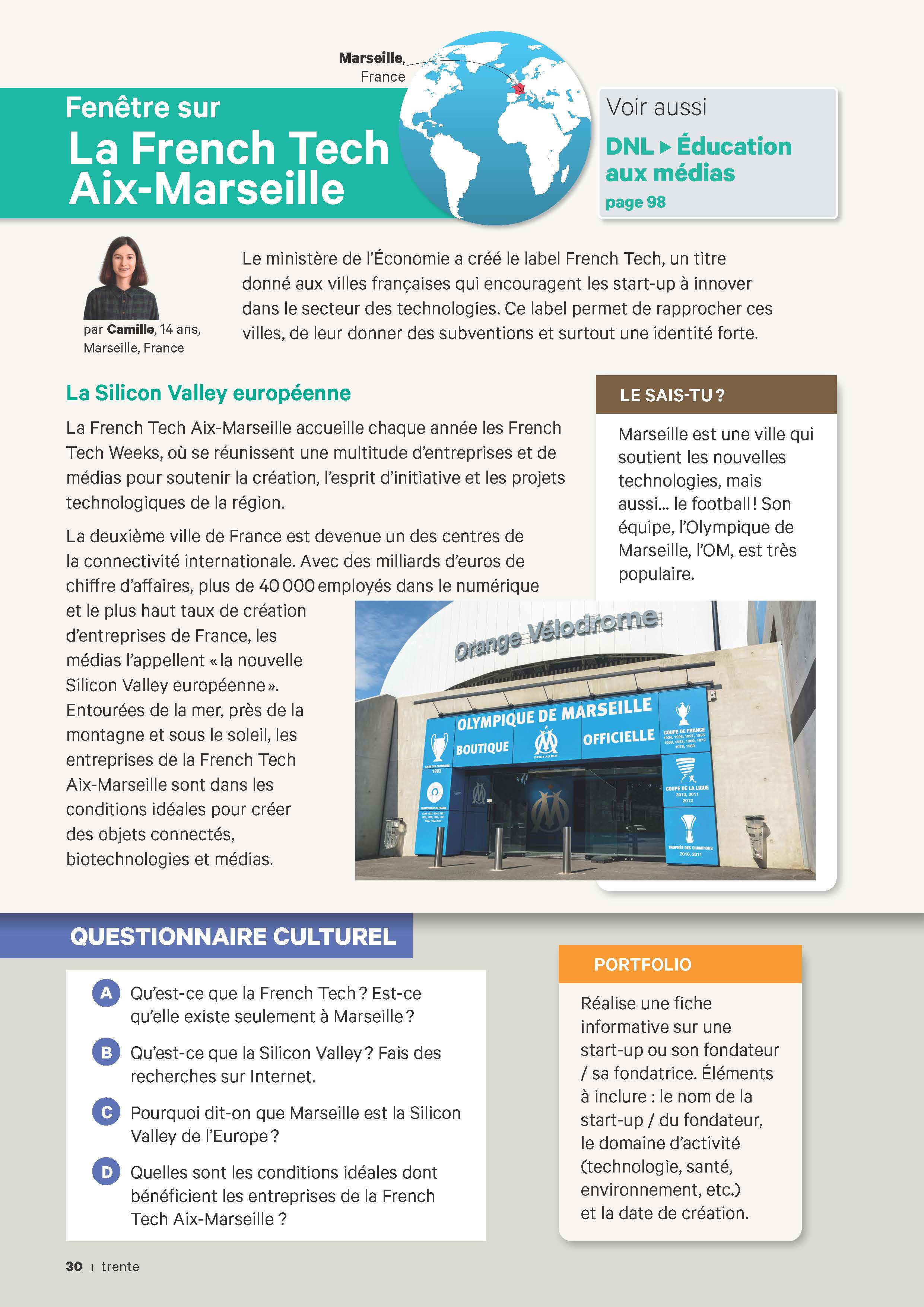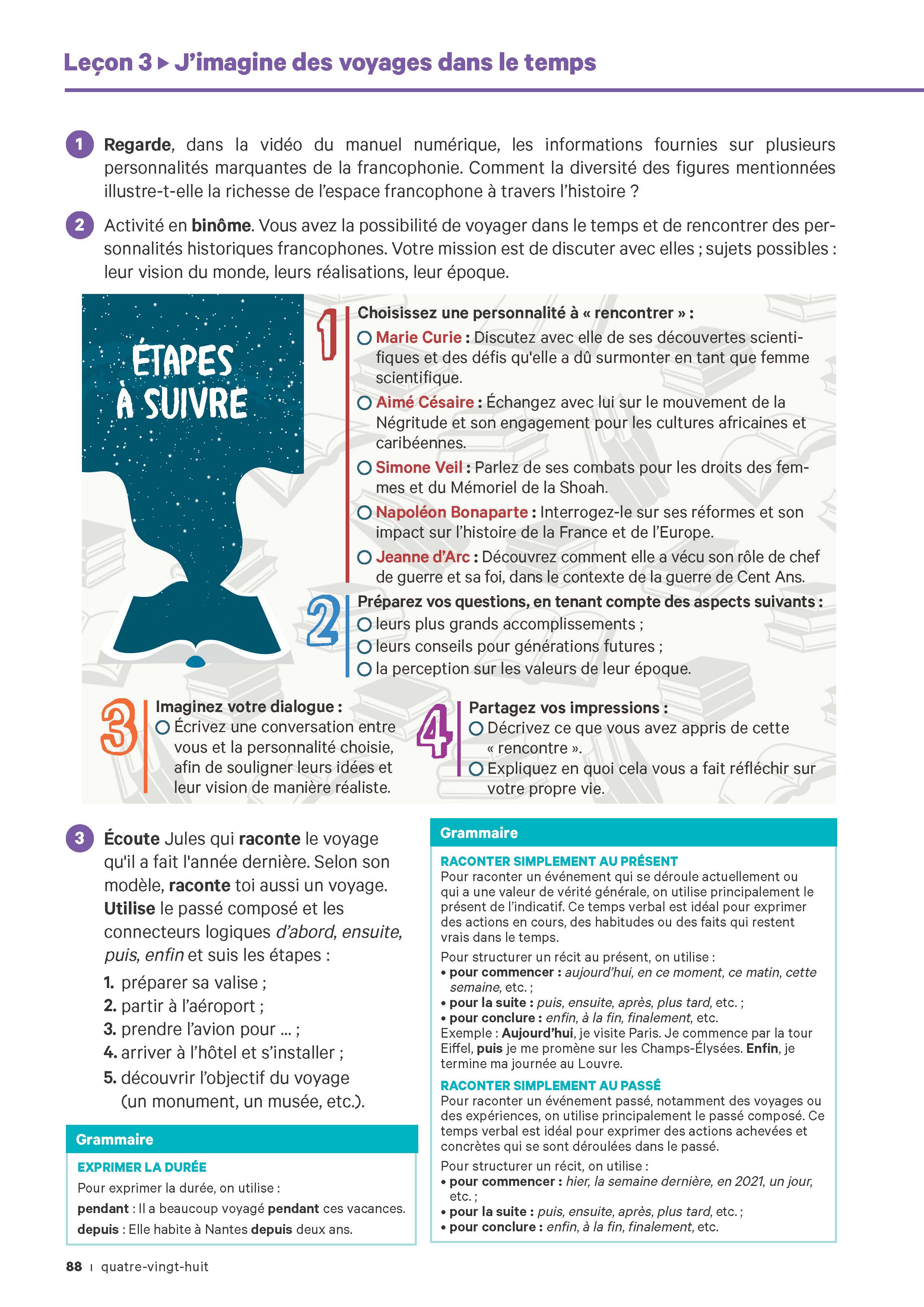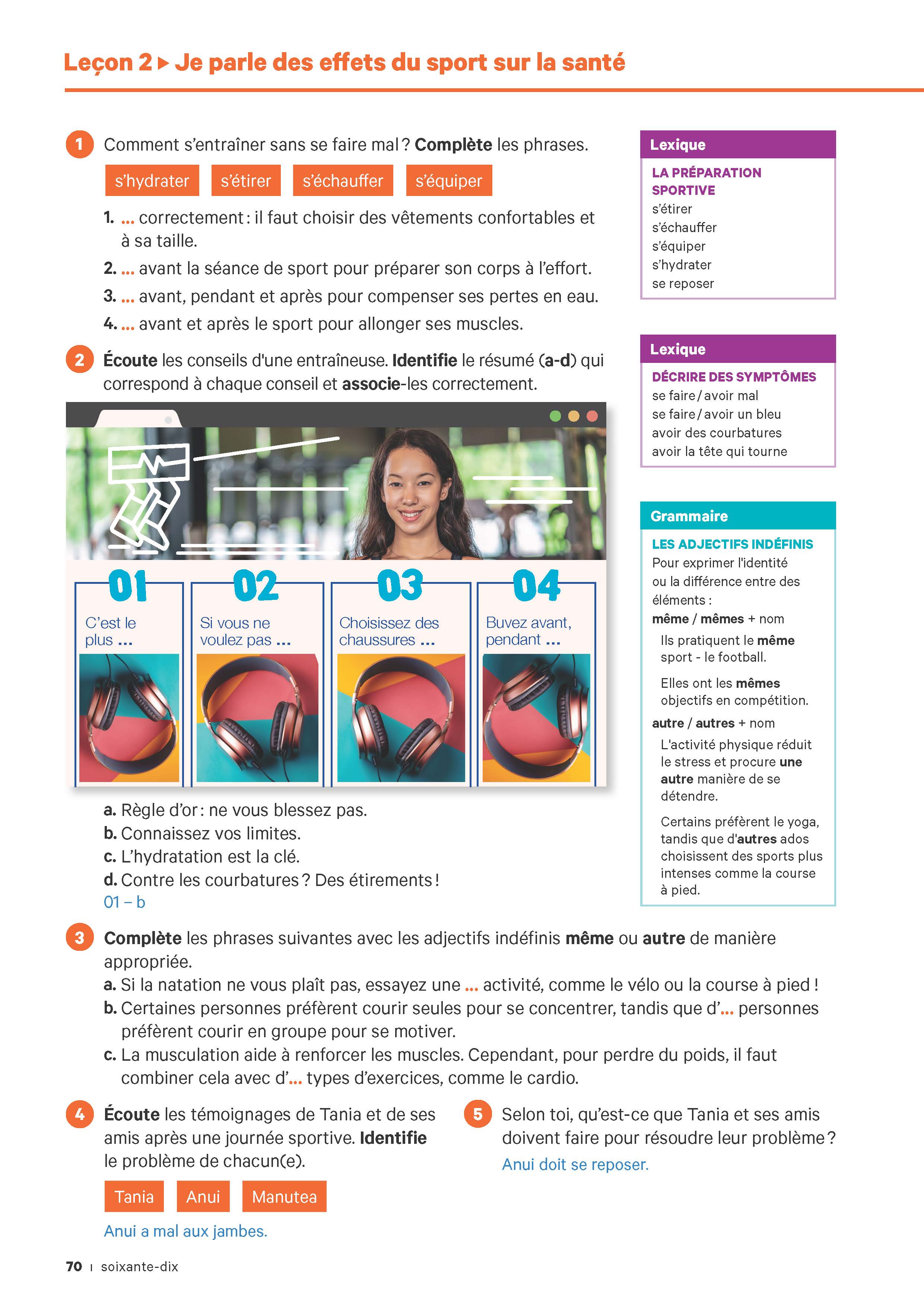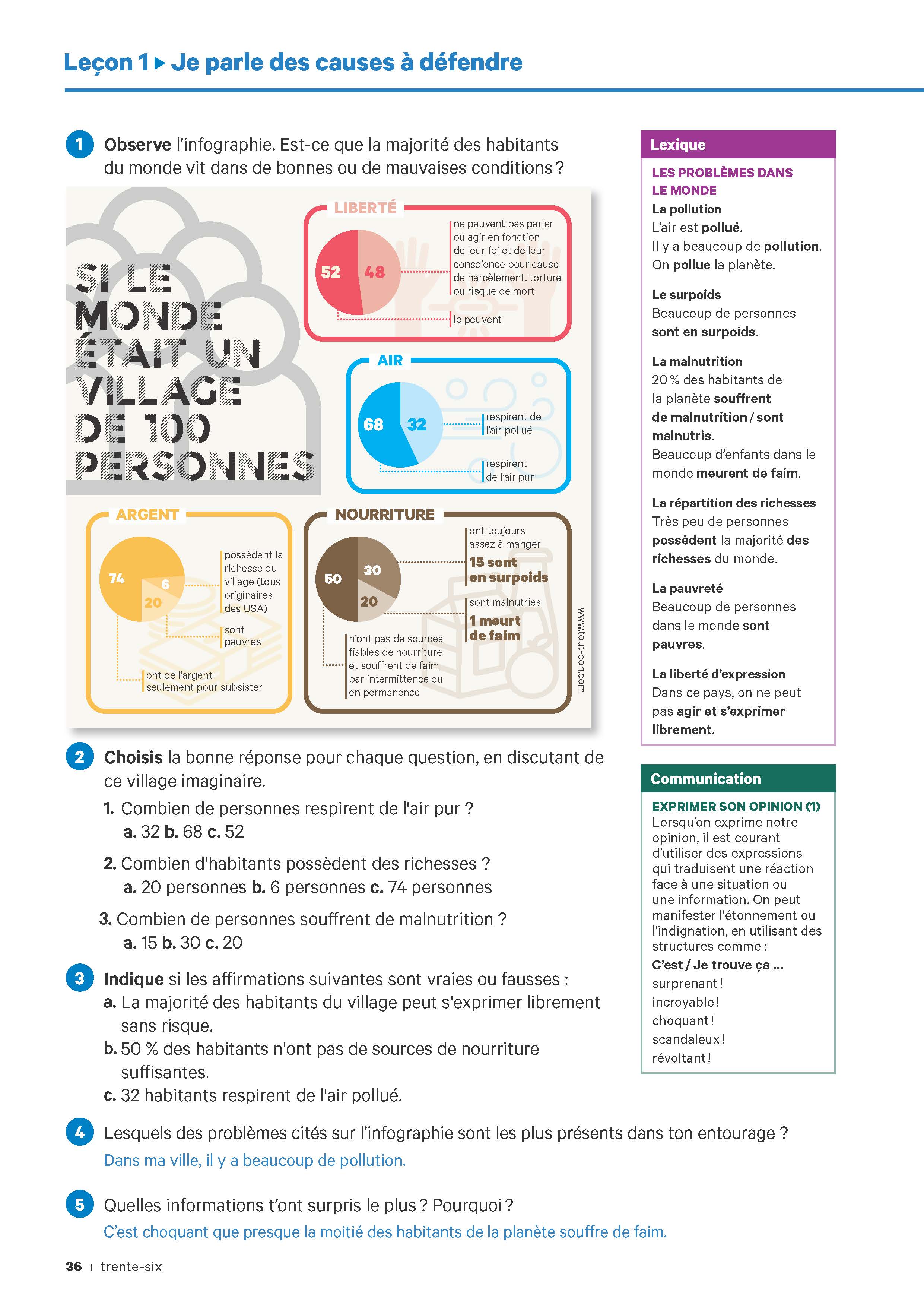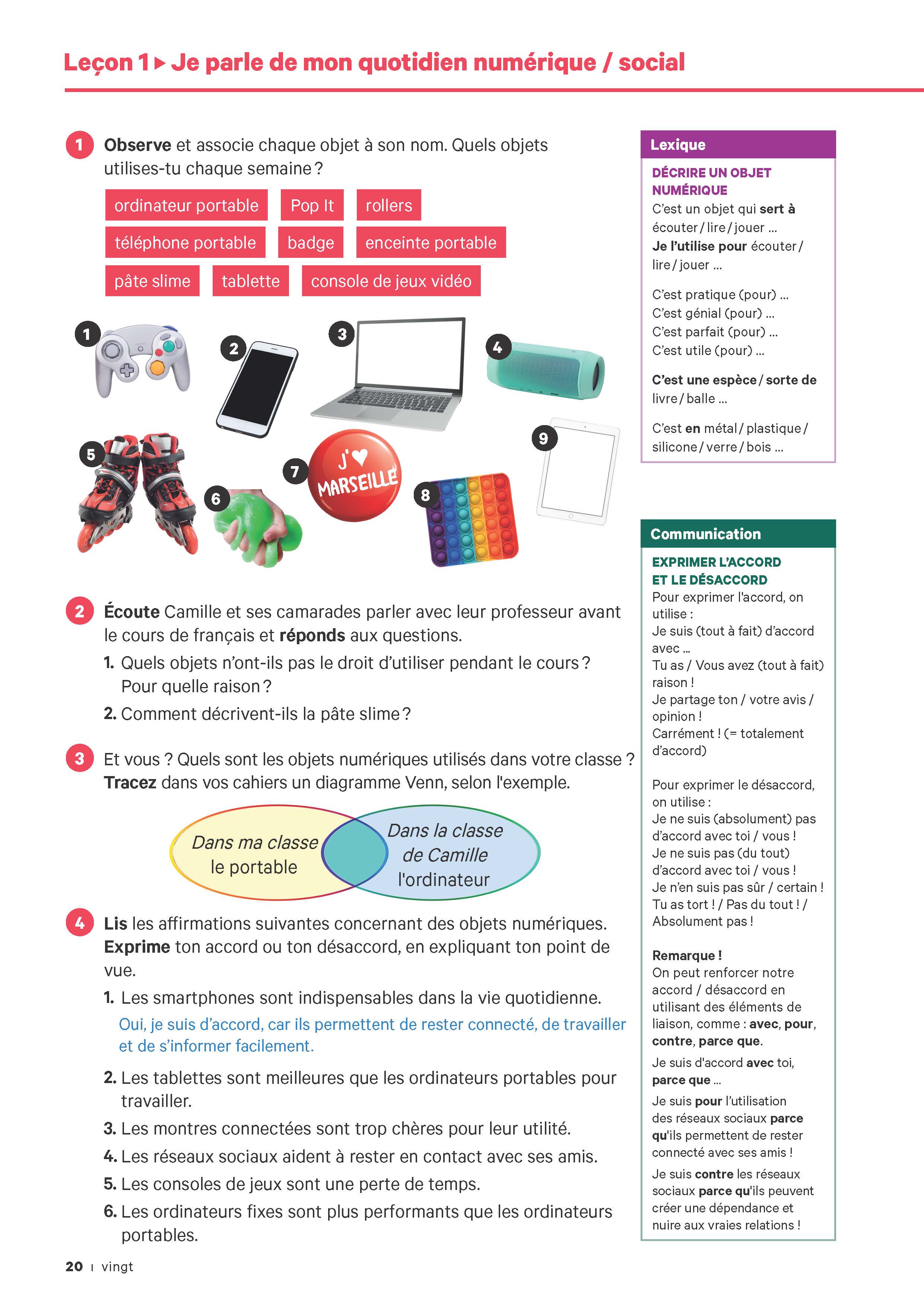 La version numérique du manuel complète la version imprimée, en offrant aux utilisateurs la possibilité d’interagir avec divers éléments de contenu qui apportent une valeur cognitive supplémentaire. Ainsi, tu pourras naviguer dans les pages du manuel, écouter des enregistrements, regarder des vidéos et résoudre des exercices interactifs.