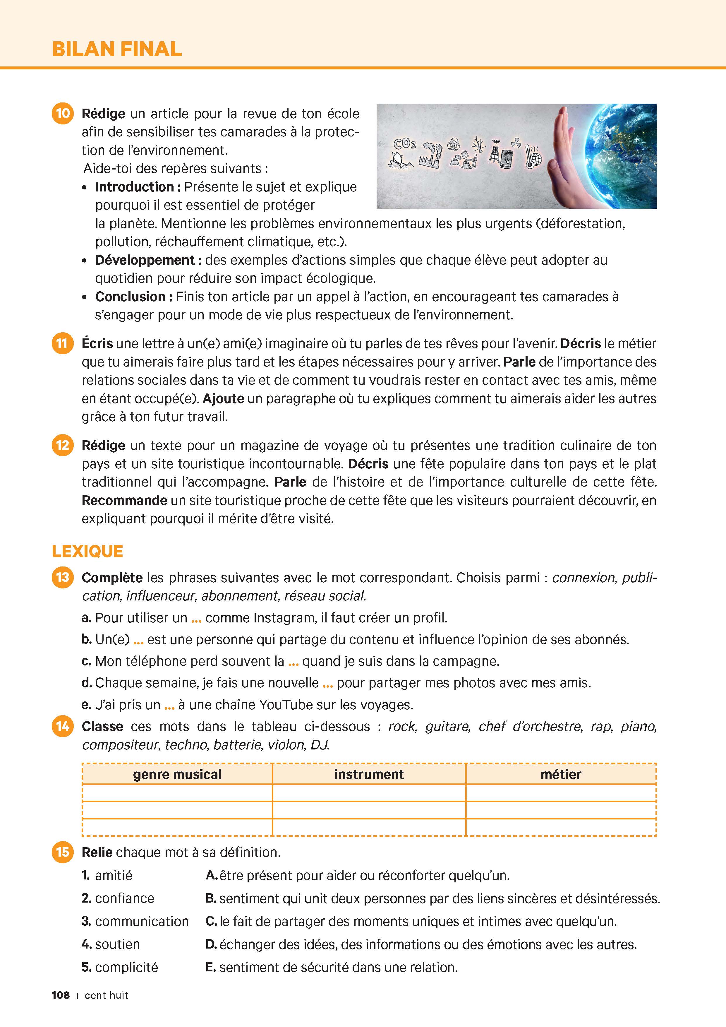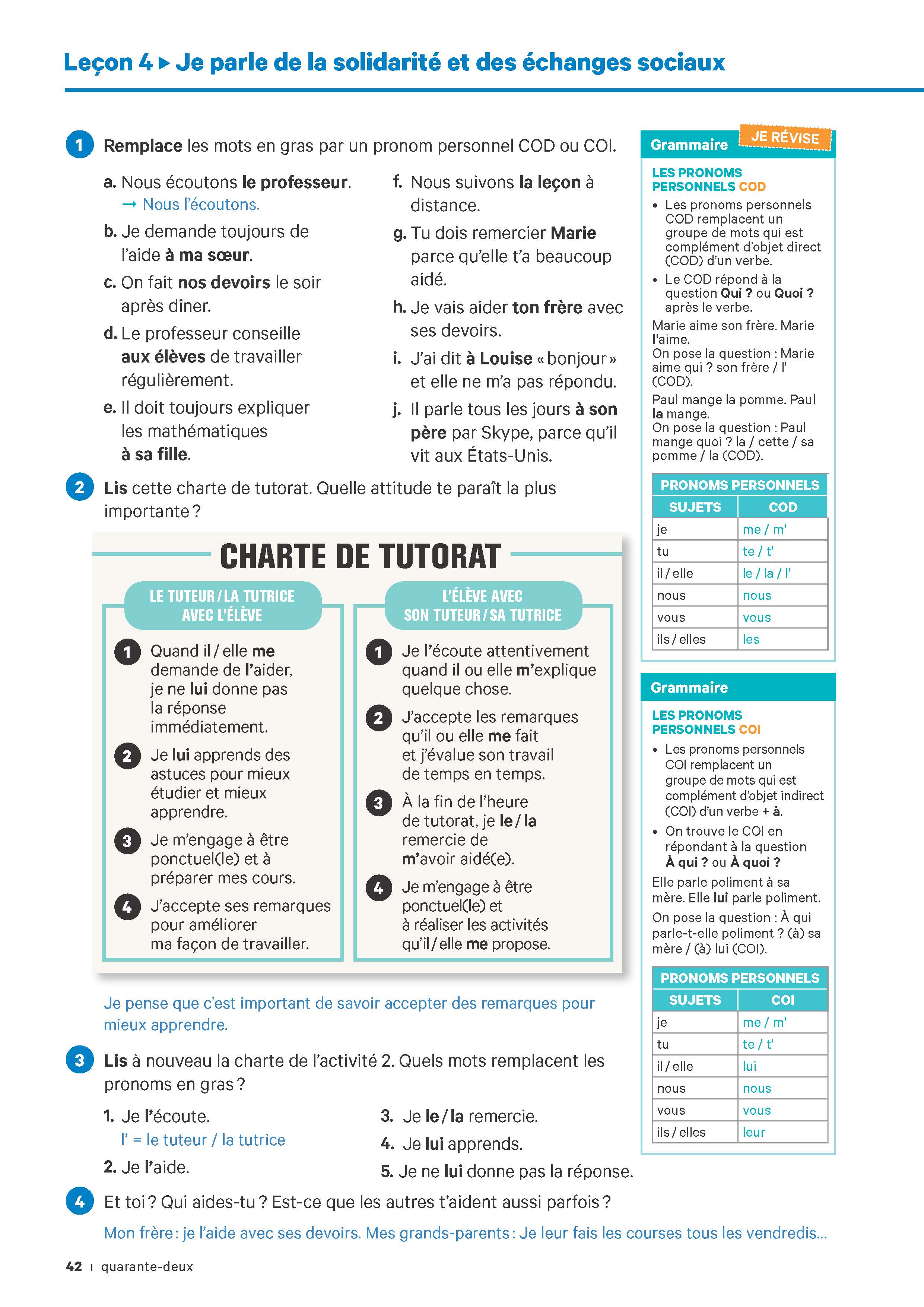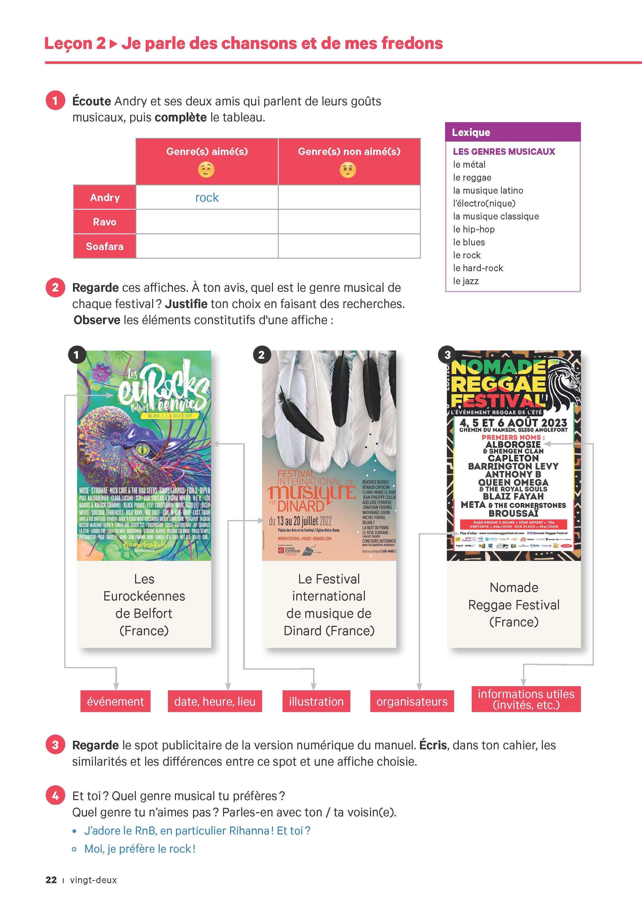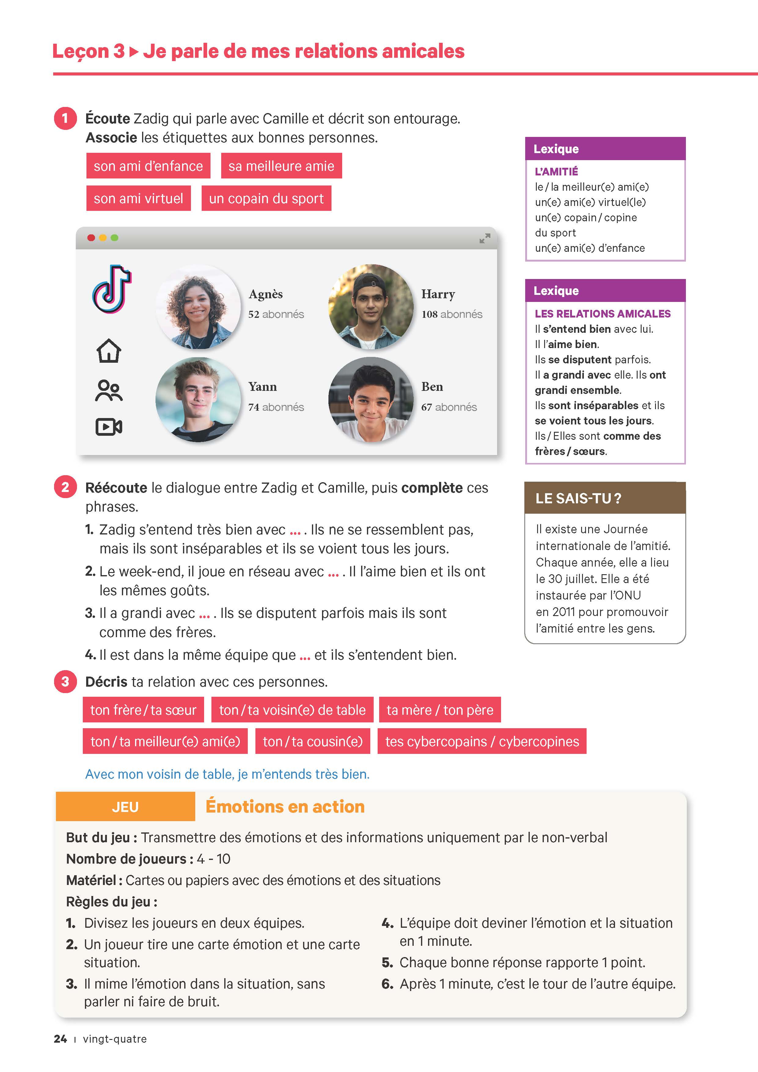 La version numérique du manuel complète la version imprimée, en offrant aux utilisateurs la possibilité d’interagir avec divers éléments de contenu qui apportent une valeur cognitive supplémentaire. Ainsi, tu pourras naviguer dans les pages du manuel, écouter des enregistrements, regarder des vidéos et résoudre des exercices interactifs.