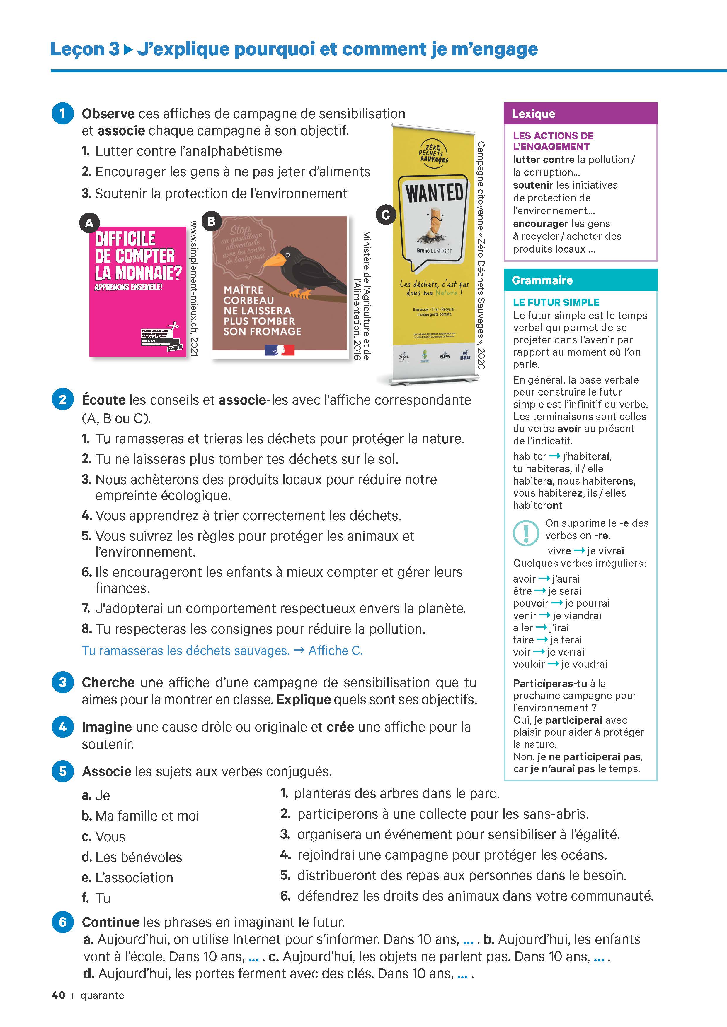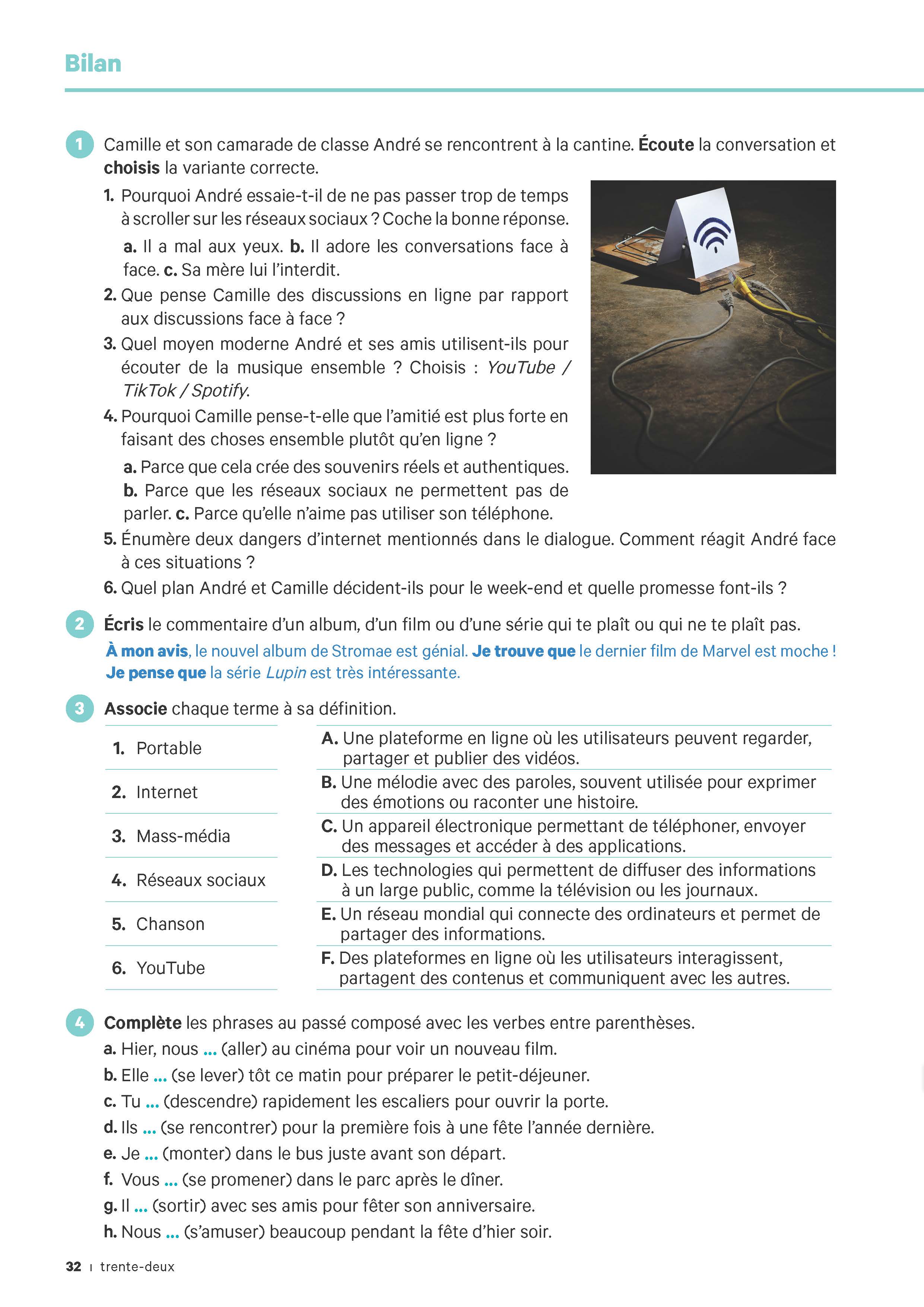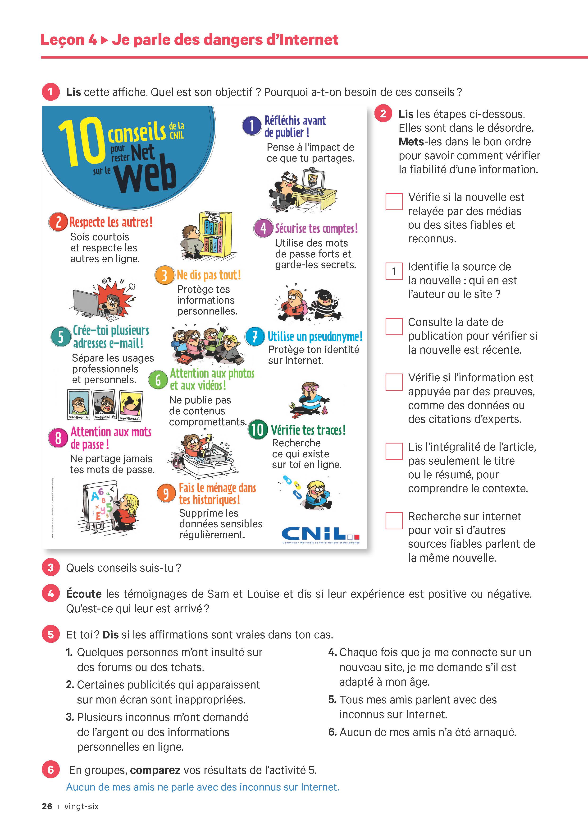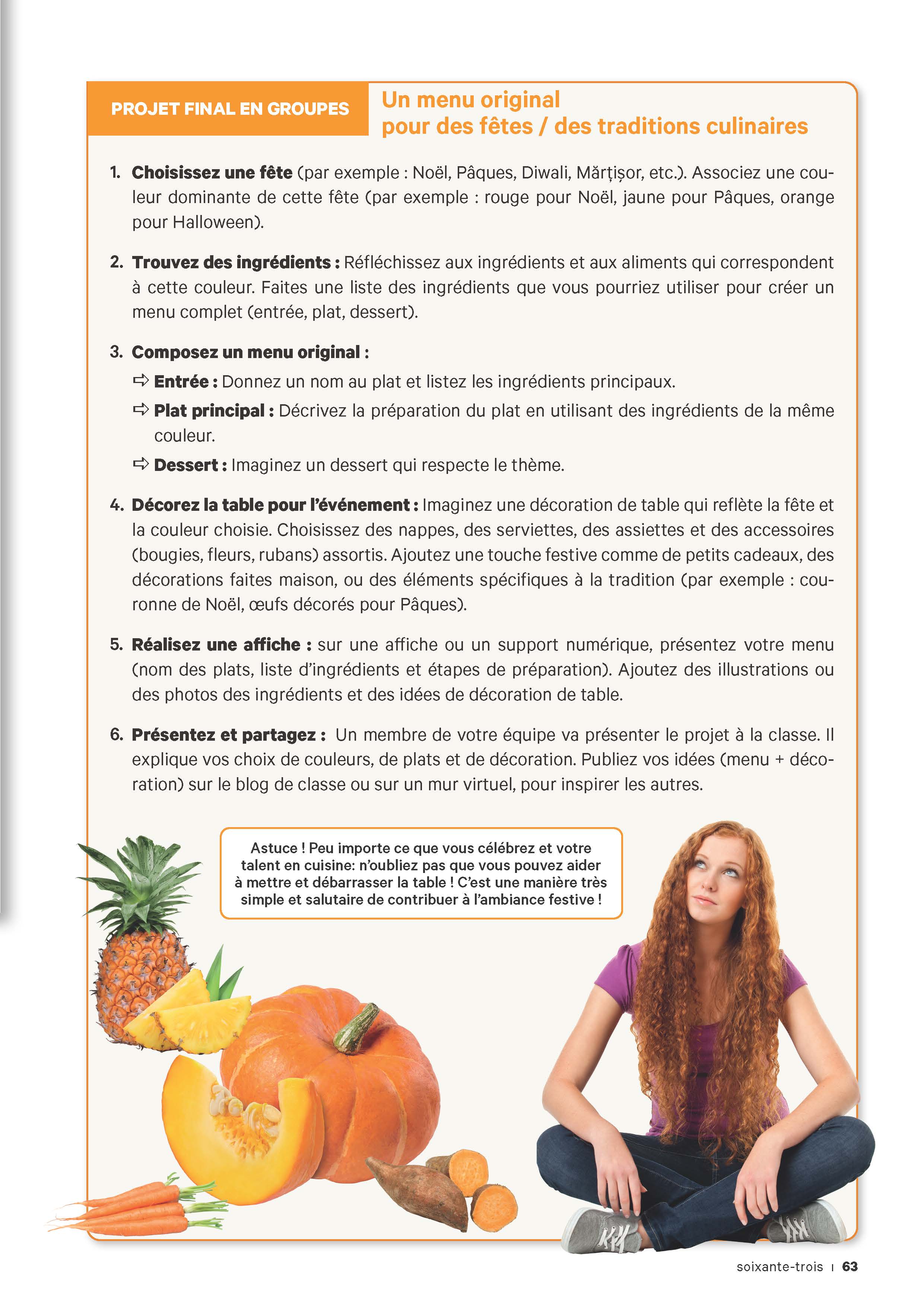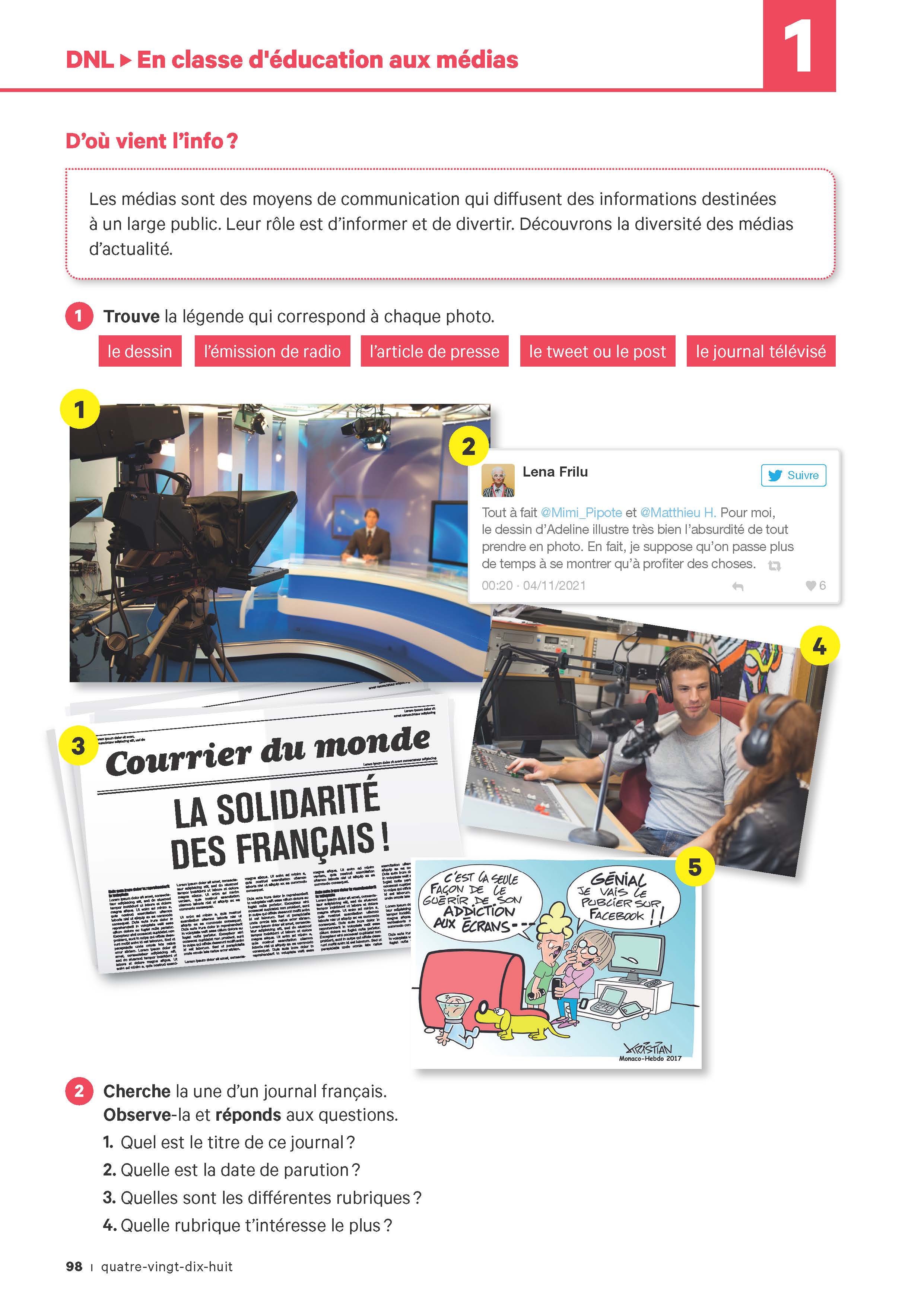 La version numérique du manuel complète la version imprimée, en offrant aux utilisateurs la possibilité d’interagir avec divers éléments de contenu qui apportent une valeur cognitive supplémentaire. Ainsi, tu pourras naviguer dans les pages du manuel, écouter des enregistrements, regarder des vidéos et résoudre des exercices interactifs.