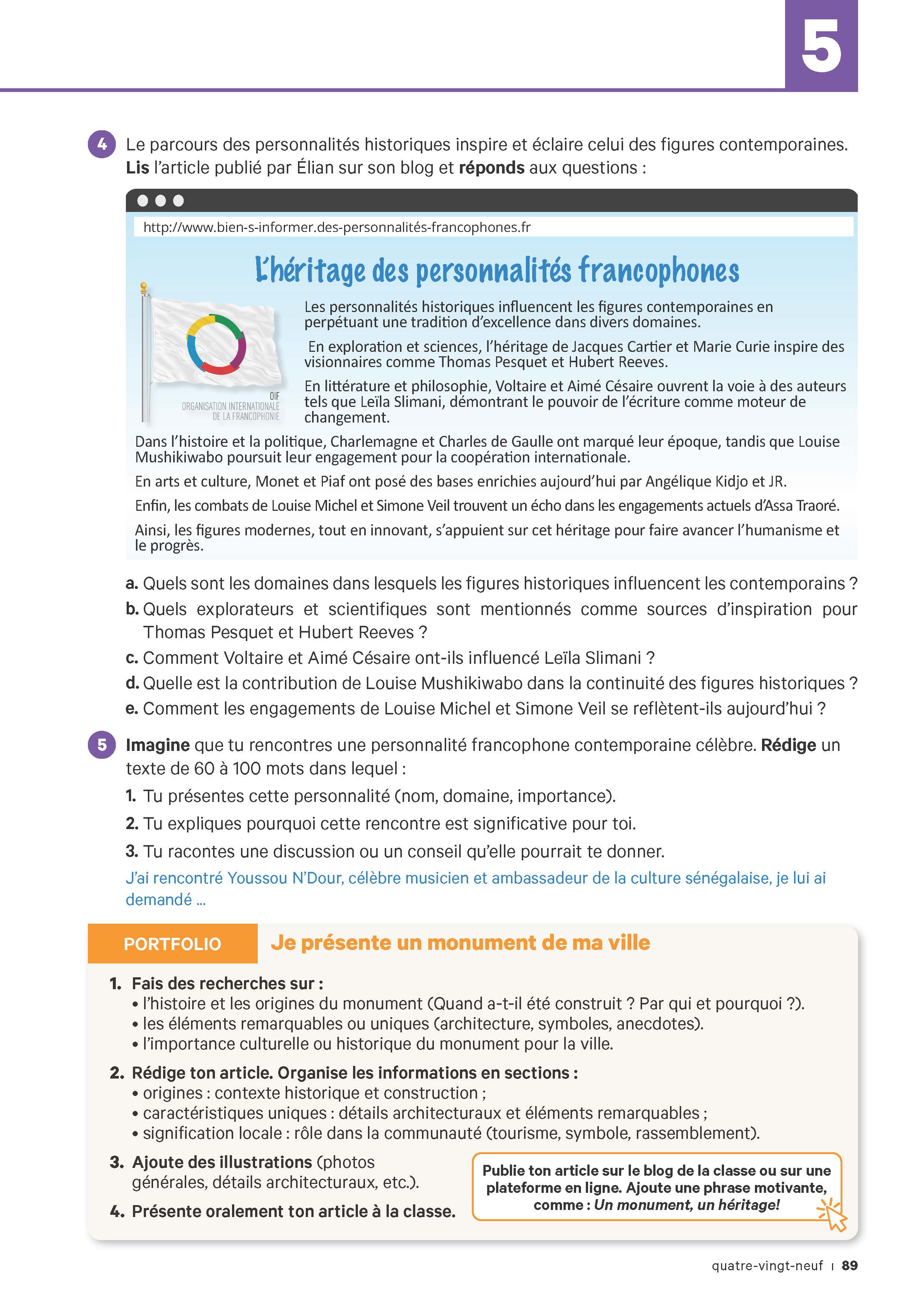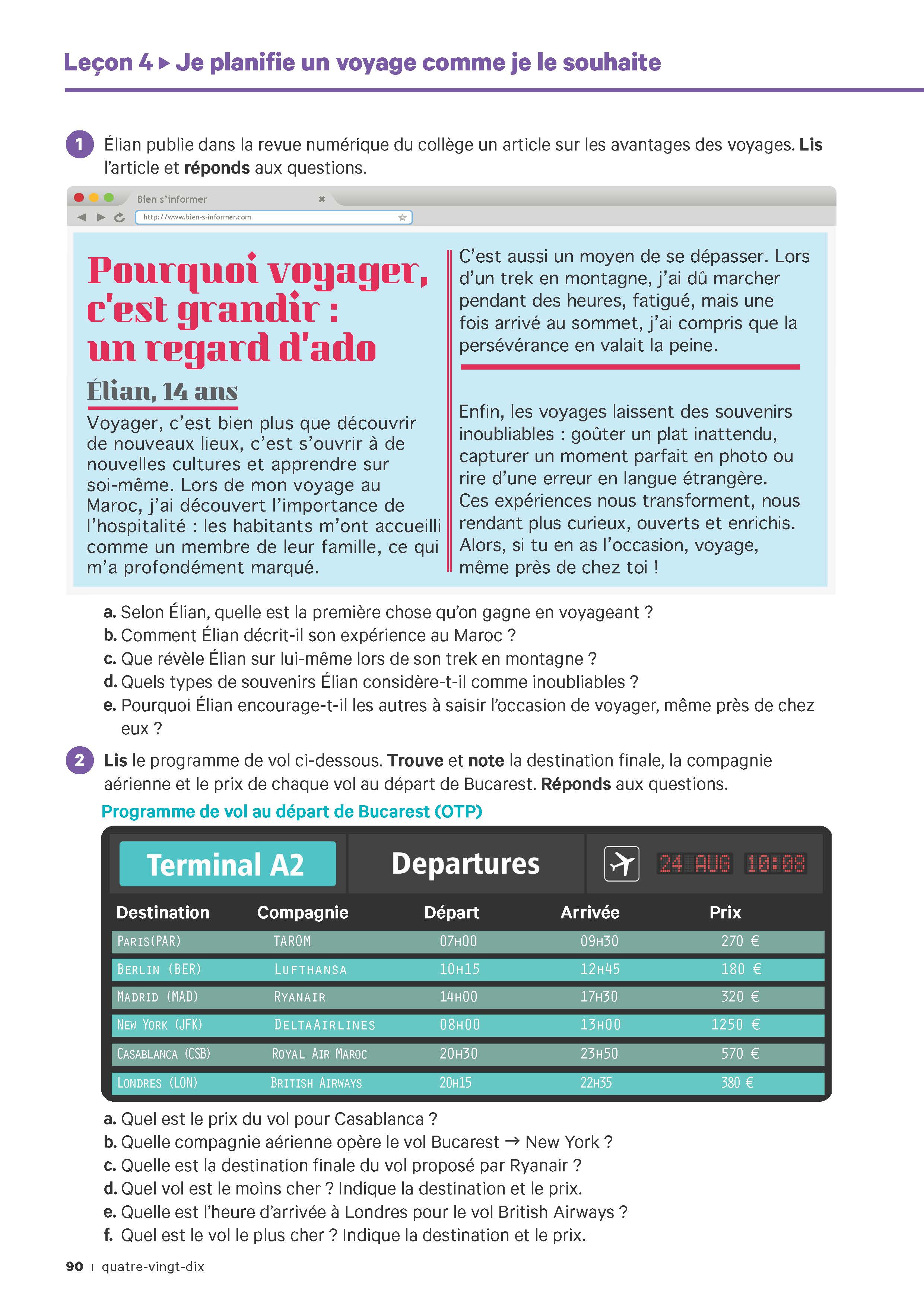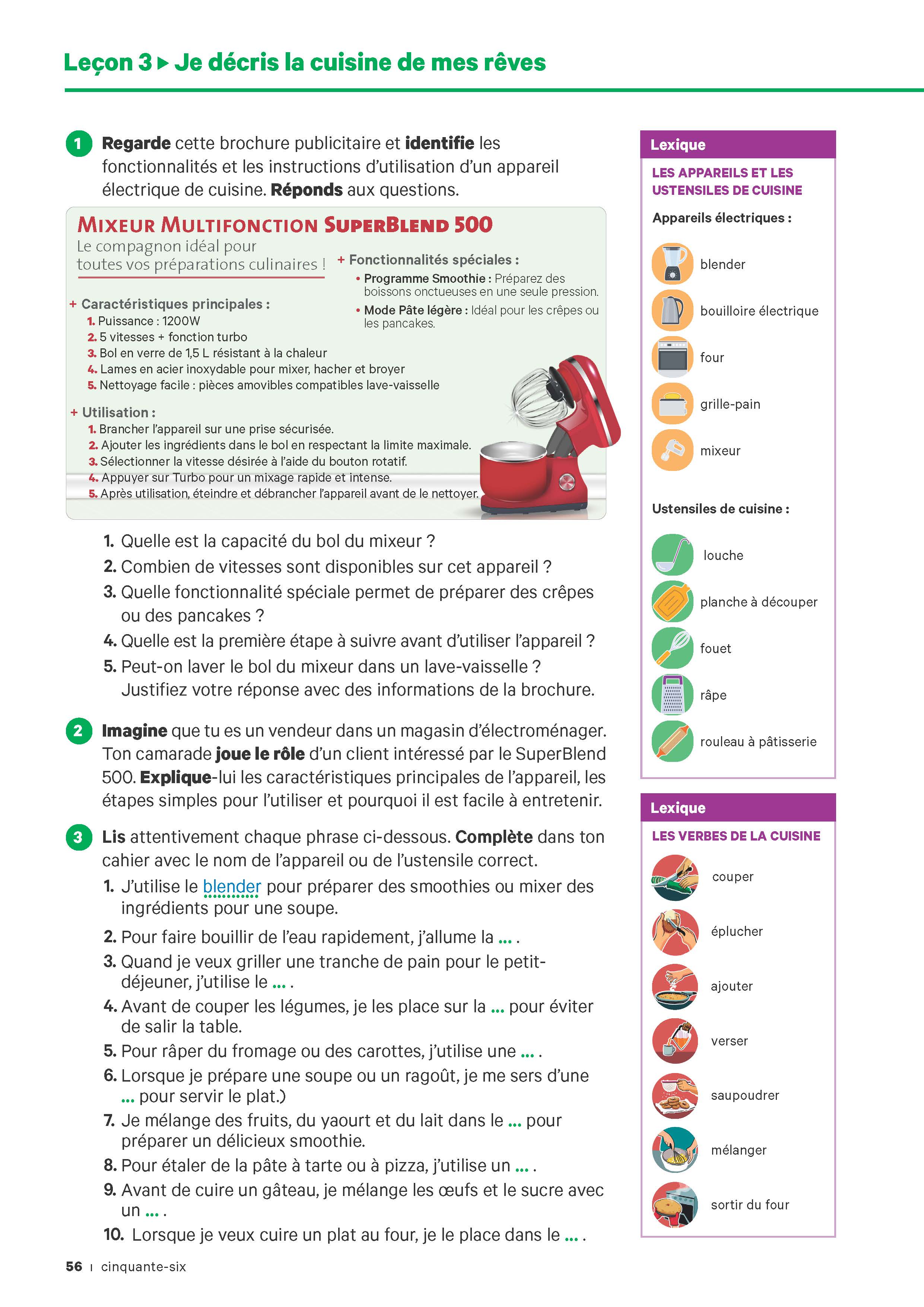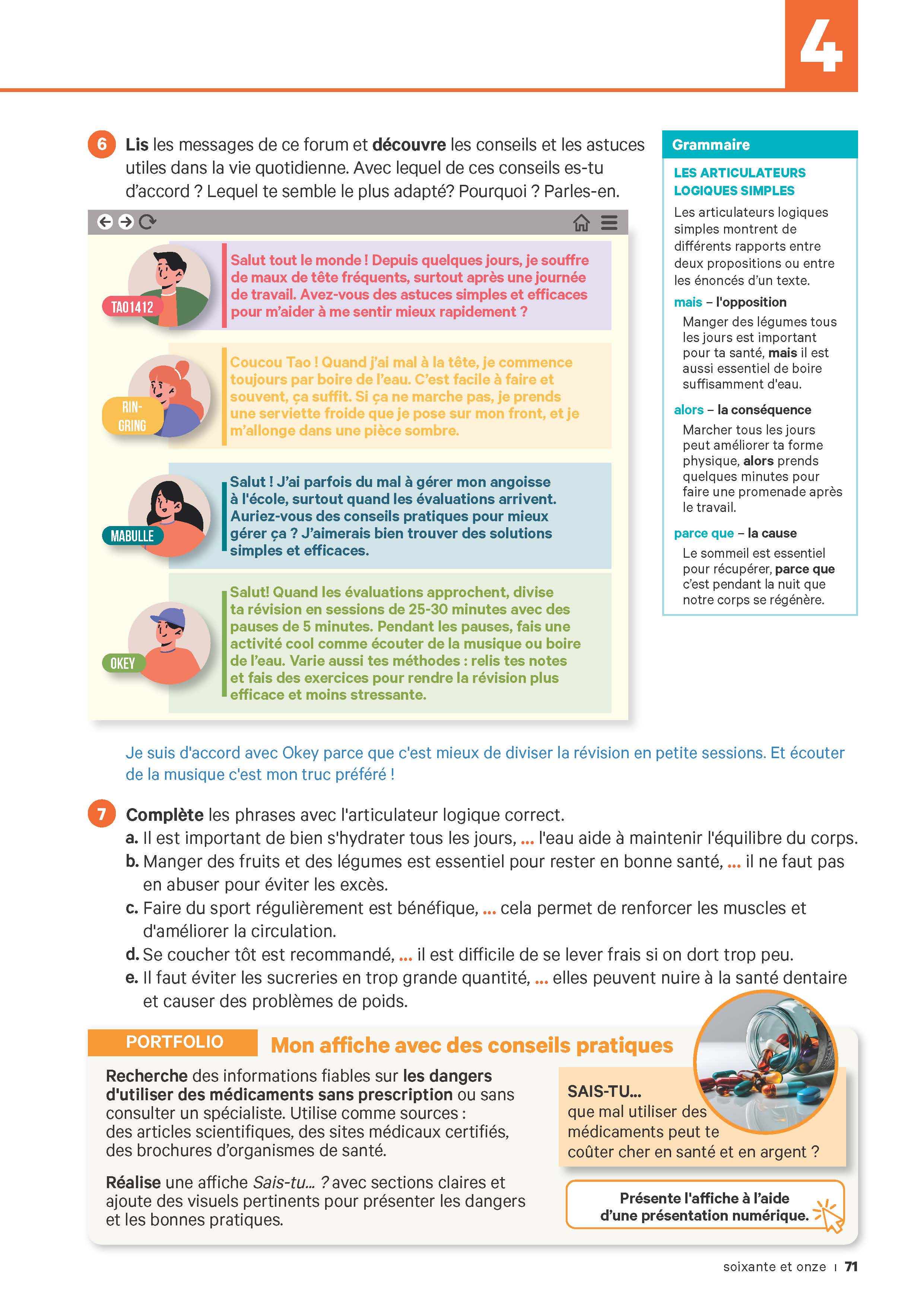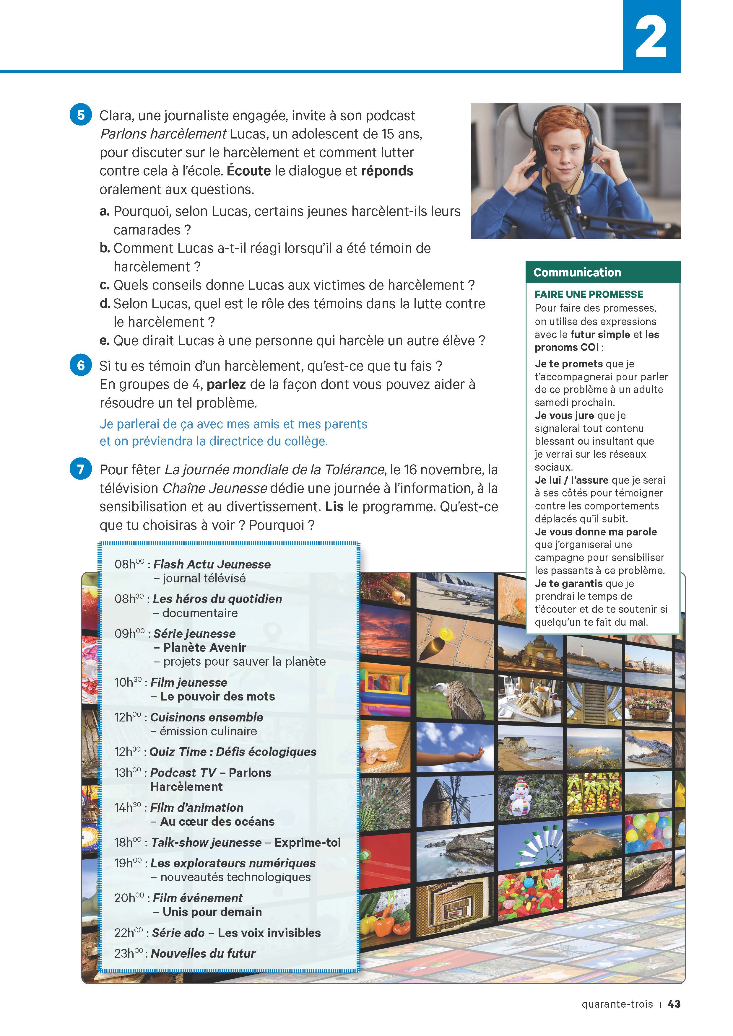 La version numérique du manuel complète la version imprimée, en offrant aux utilisateurs la possibilité d’interagir avec divers éléments de contenu qui apportent une valeur cognitive supplémentaire. Ainsi, tu pourras naviguer dans les pages du manuel, écouter des enregistrements, regarder des vidéos et résoudre des exercices interactifs.