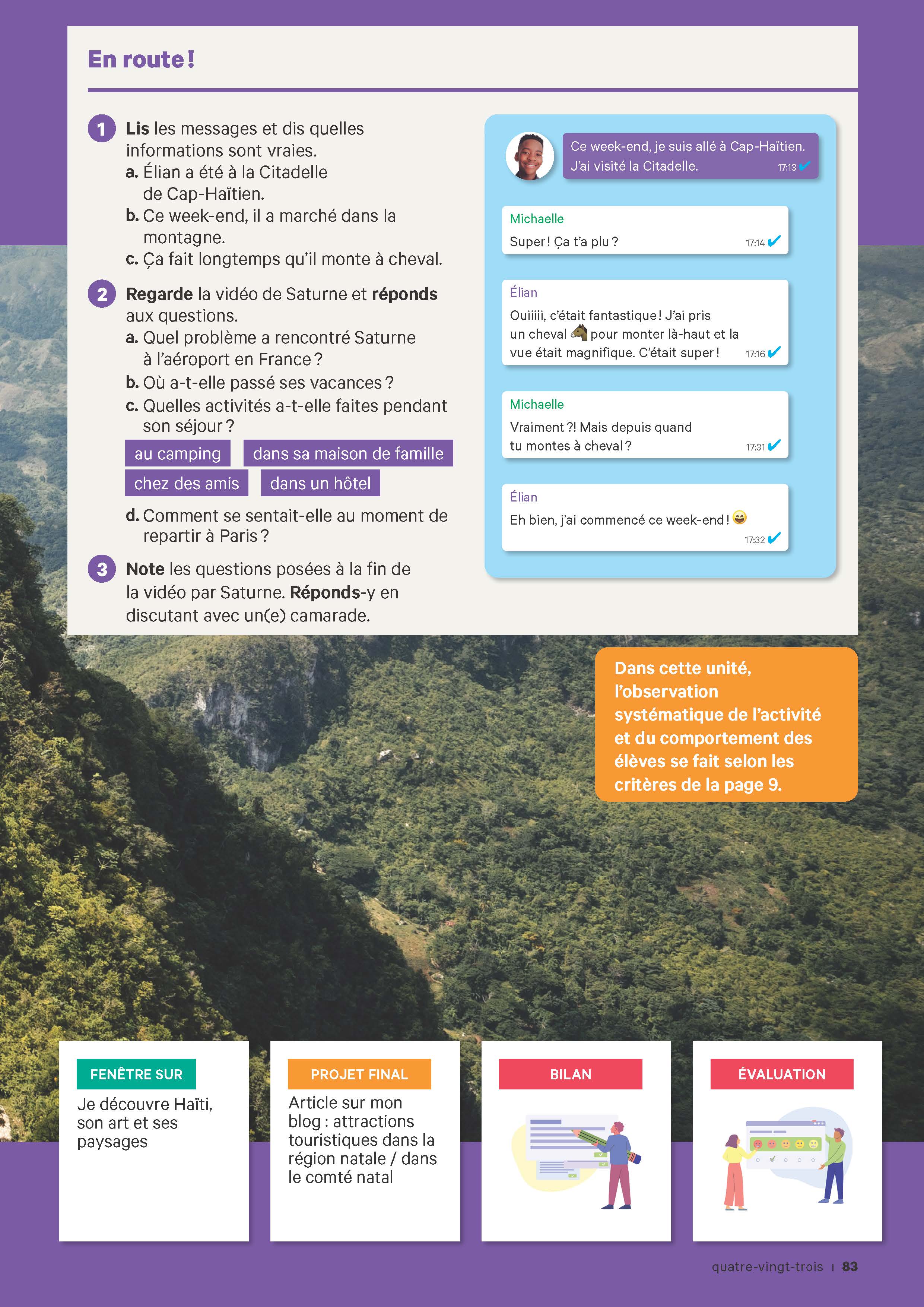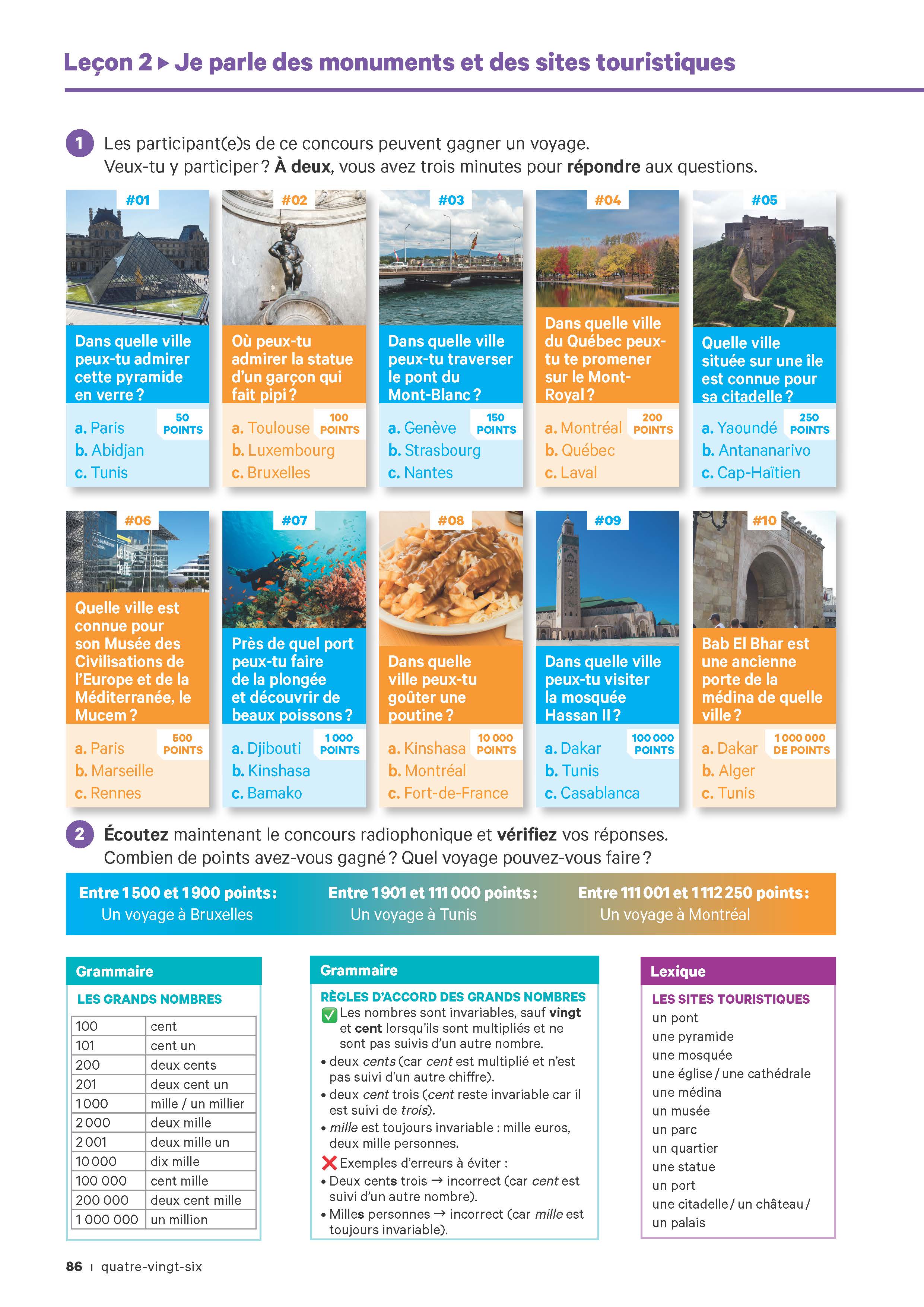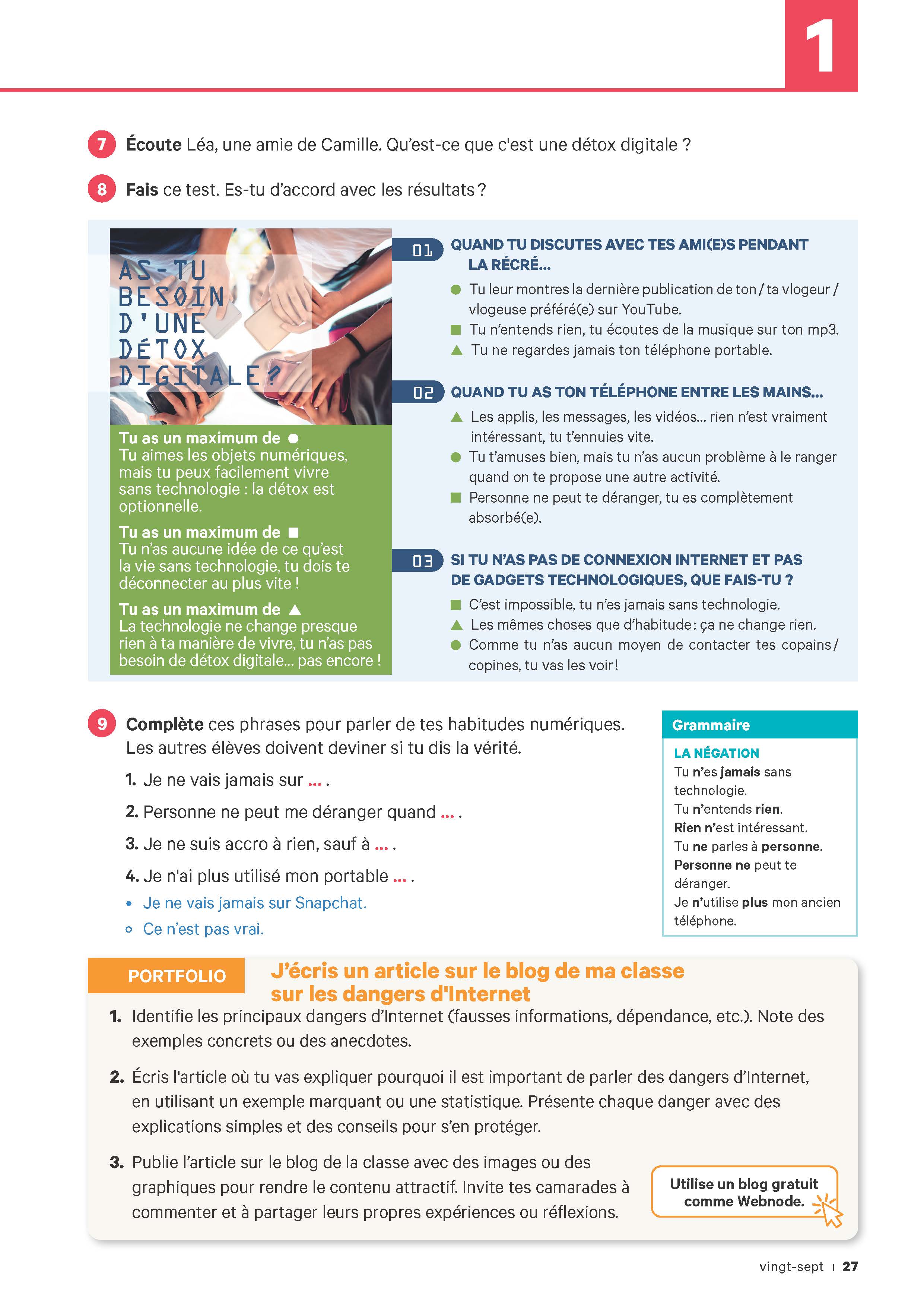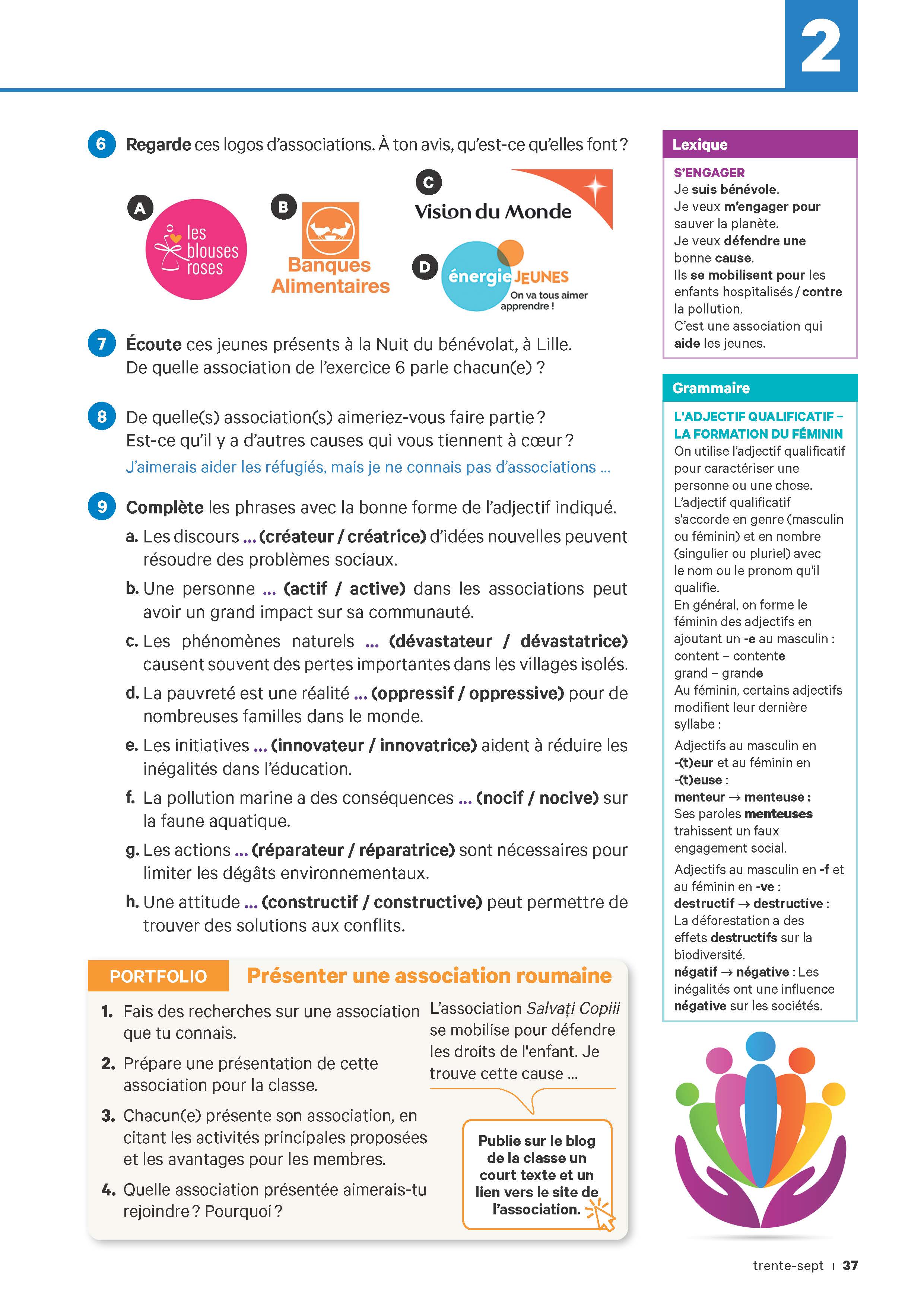 La version numérique du manuel complète la version imprimée, en offrant aux utilisateurs la possibilité d’interagir avec divers éléments de contenu qui apportent une valeur cognitive supplémentaire. Ainsi, tu pourras naviguer dans les pages du manuel, écouter des enregistrements, regarder des vidéos et résoudre des exercices interactifs.