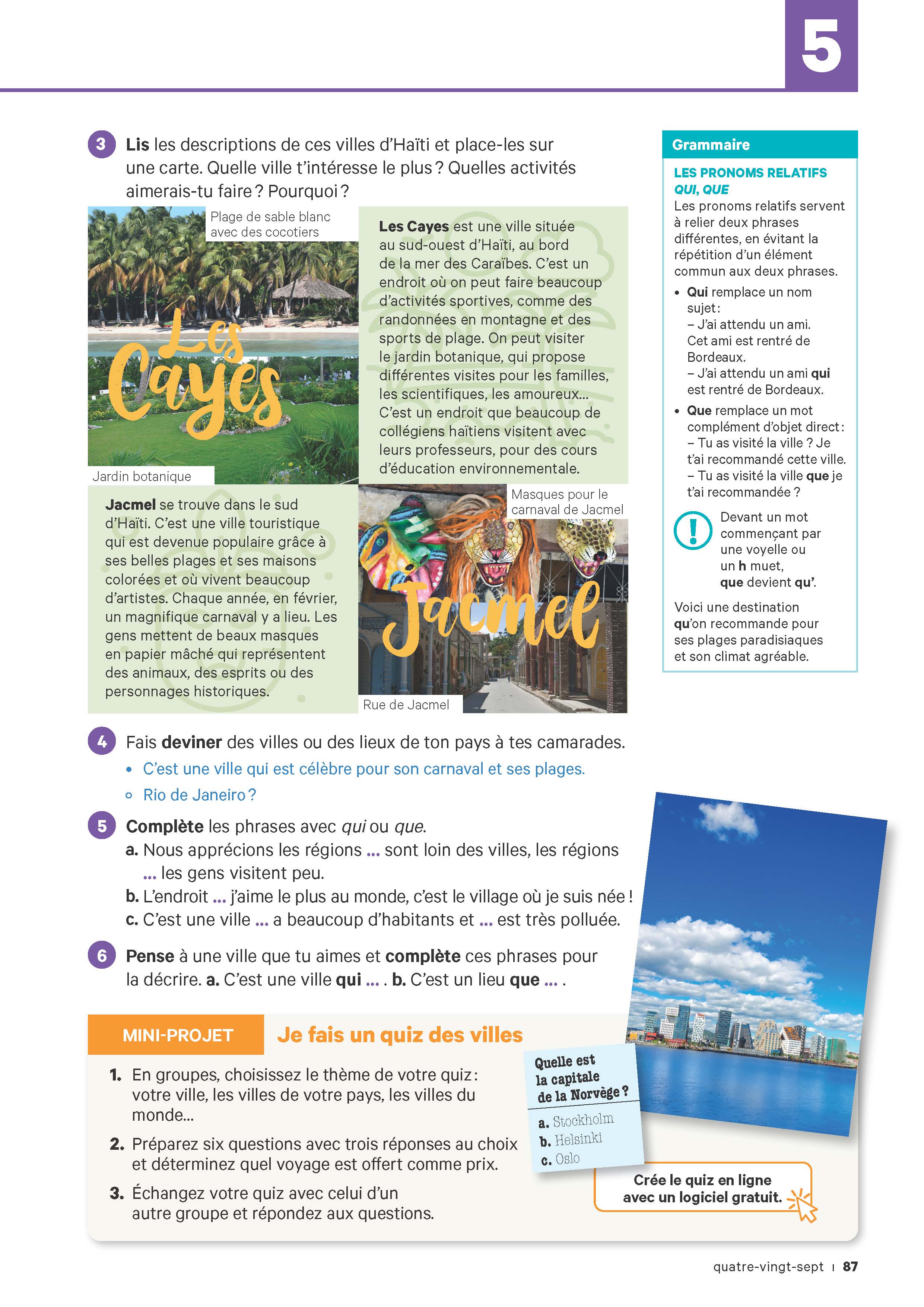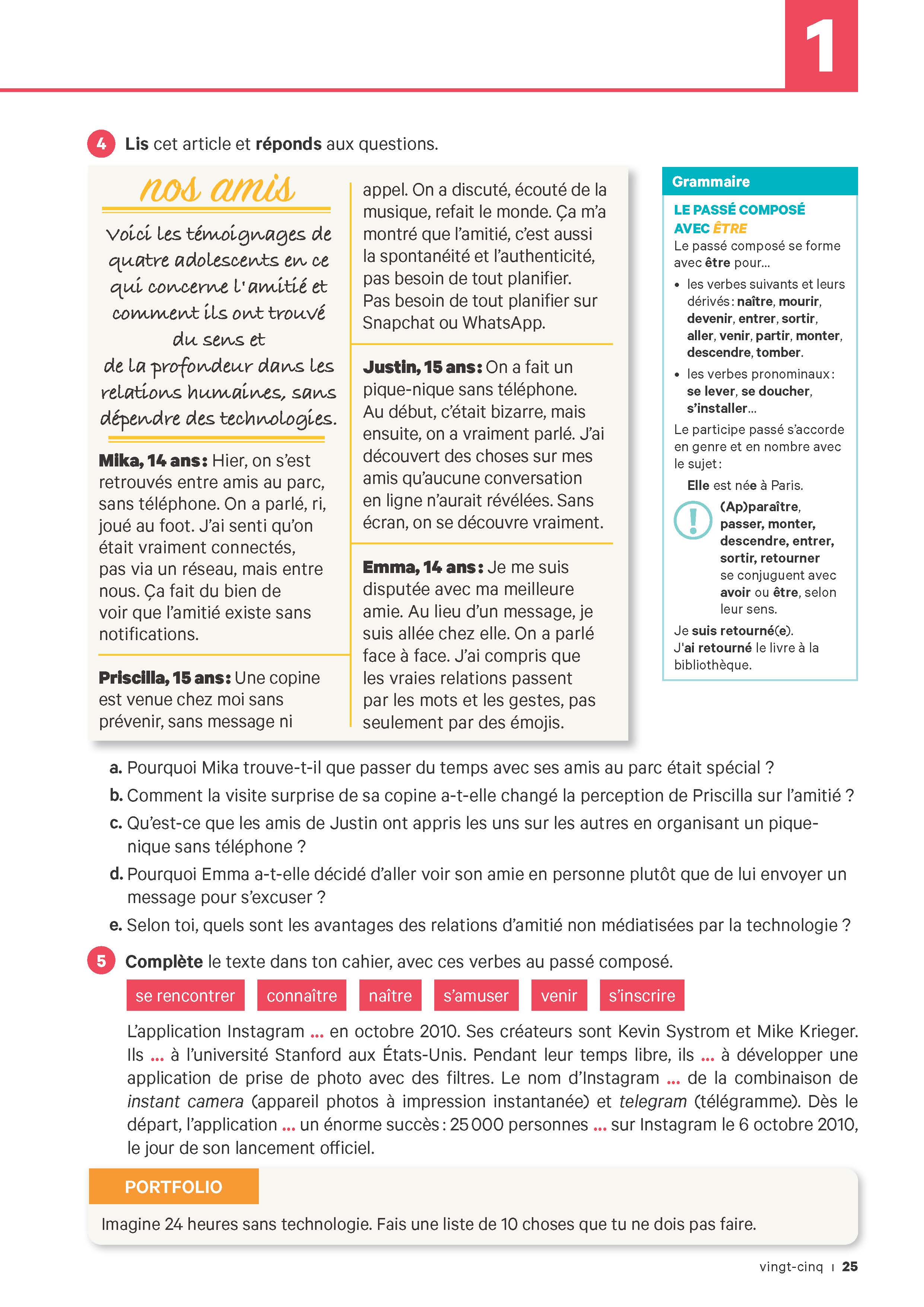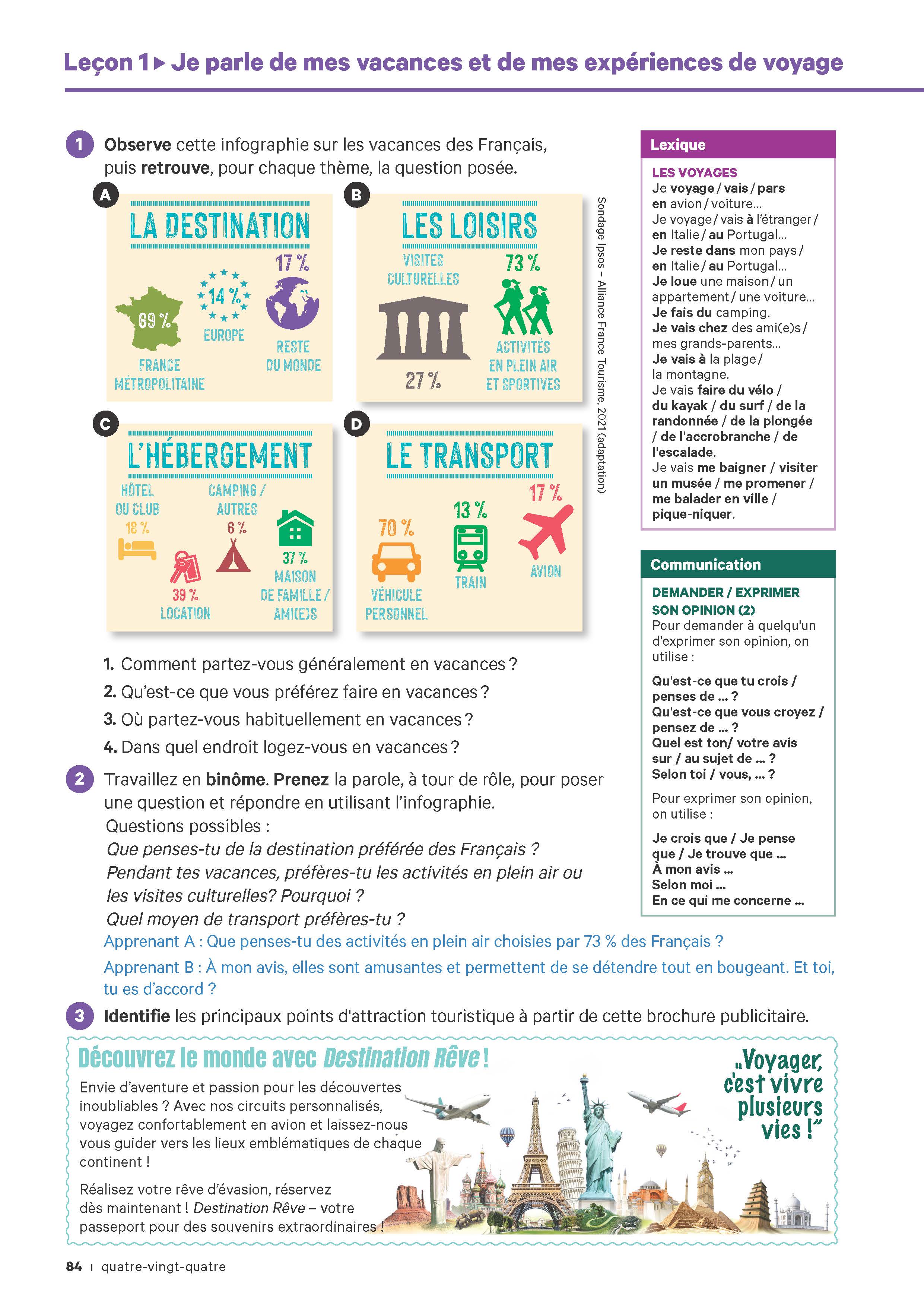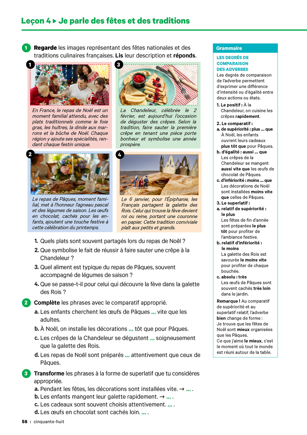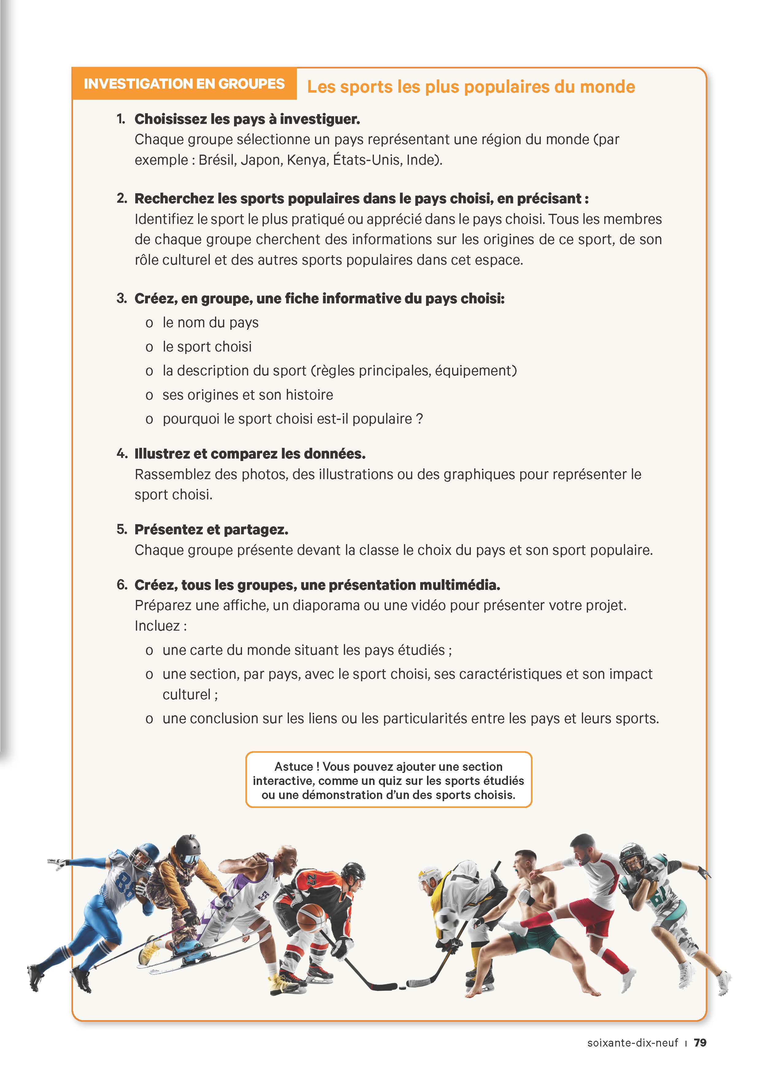 La version numérique du manuel complète la version imprimée, en offrant aux utilisateurs la possibilité d’interagir avec divers éléments de contenu qui apportent une valeur cognitive supplémentaire. Ainsi, tu pourras naviguer dans les pages du manuel, écouter des enregistrements, regarder des vidéos et résoudre des exercices interactifs.