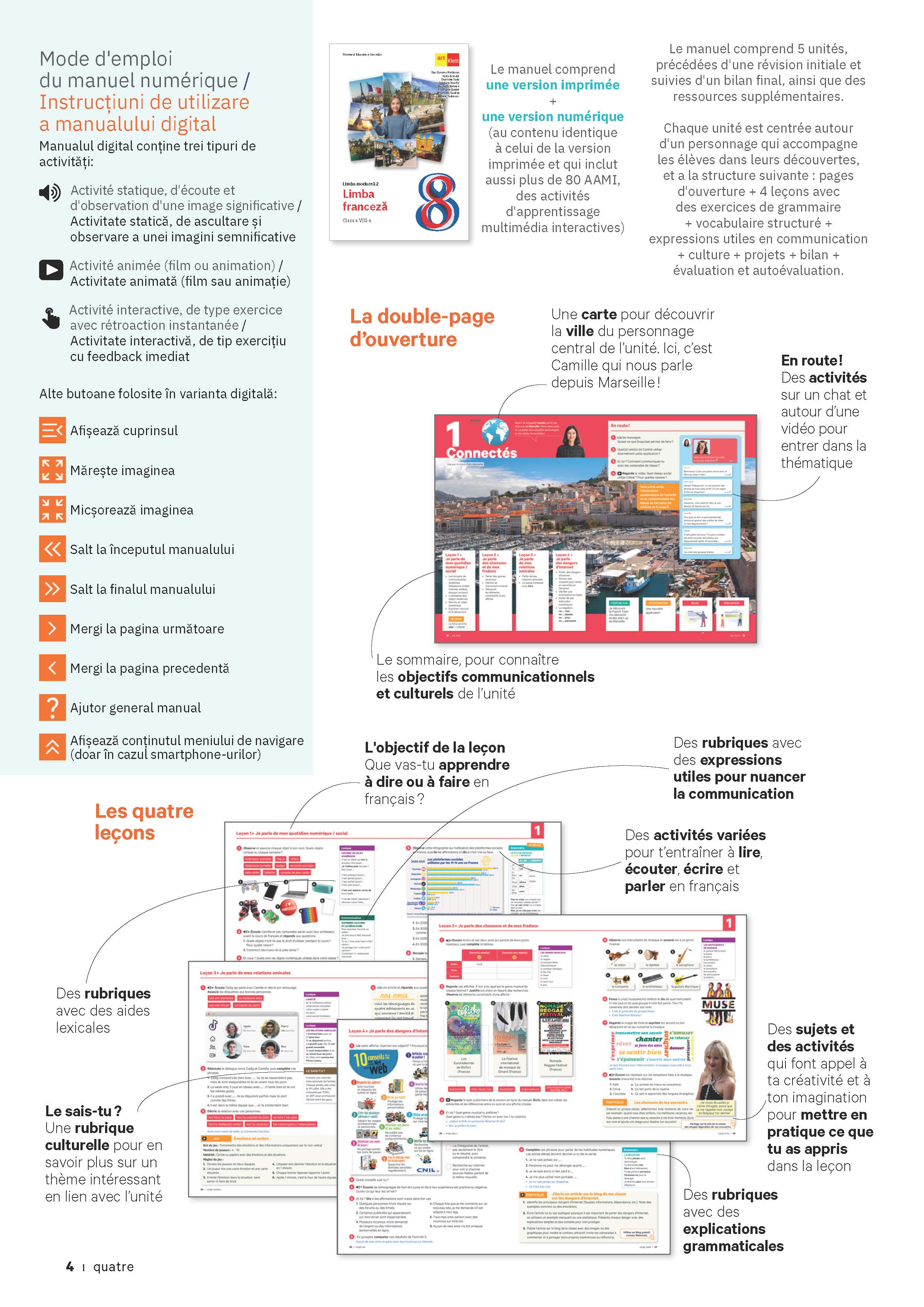 Versiunea digitală a manualului completează versiunea tipărită, oferindu-le suplimentar utilizatorilor posibilitatea de a interacționa cu diverse elemente de conținut ce presupun plus cognitiv. Astfel, vei putea naviga prin paginile manualului și vei putea audia înregistrări, vei urmări videouri și vei rezolva exerciții interactive.