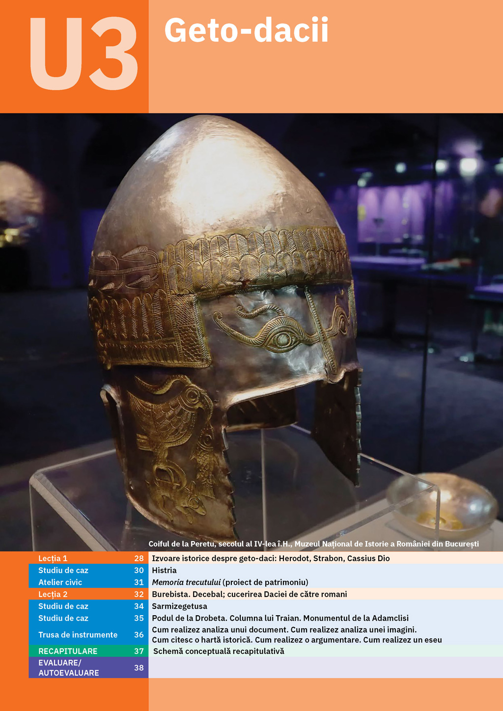 afișează cuprinsul manualului și îți permite accesarea oricărei lecții printr-un salt direct;
